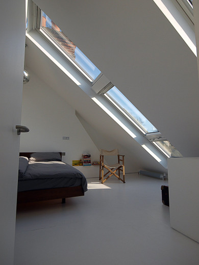 (Text Quotes: We managed to expose the inherent generous space available within the existing envelope without adding any cubic meters… In opposition to many conversions where the sledgehammer demolishes great parts of the house, I like to think of this project as more like the scalpel works in precision surgery with well-placed minimal cuts to great effect.