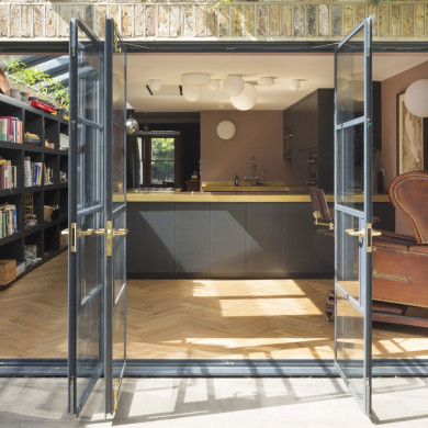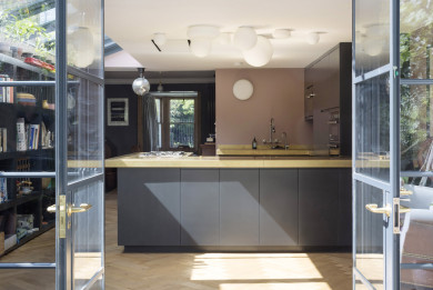 Grid meets Brass: Side- and kitchen extension, ground floor re-design.
