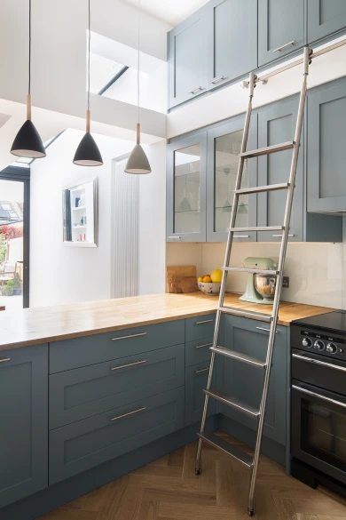 Library Ladder Kitchen: Internal Kitchen Reconfiguration and Side Extension